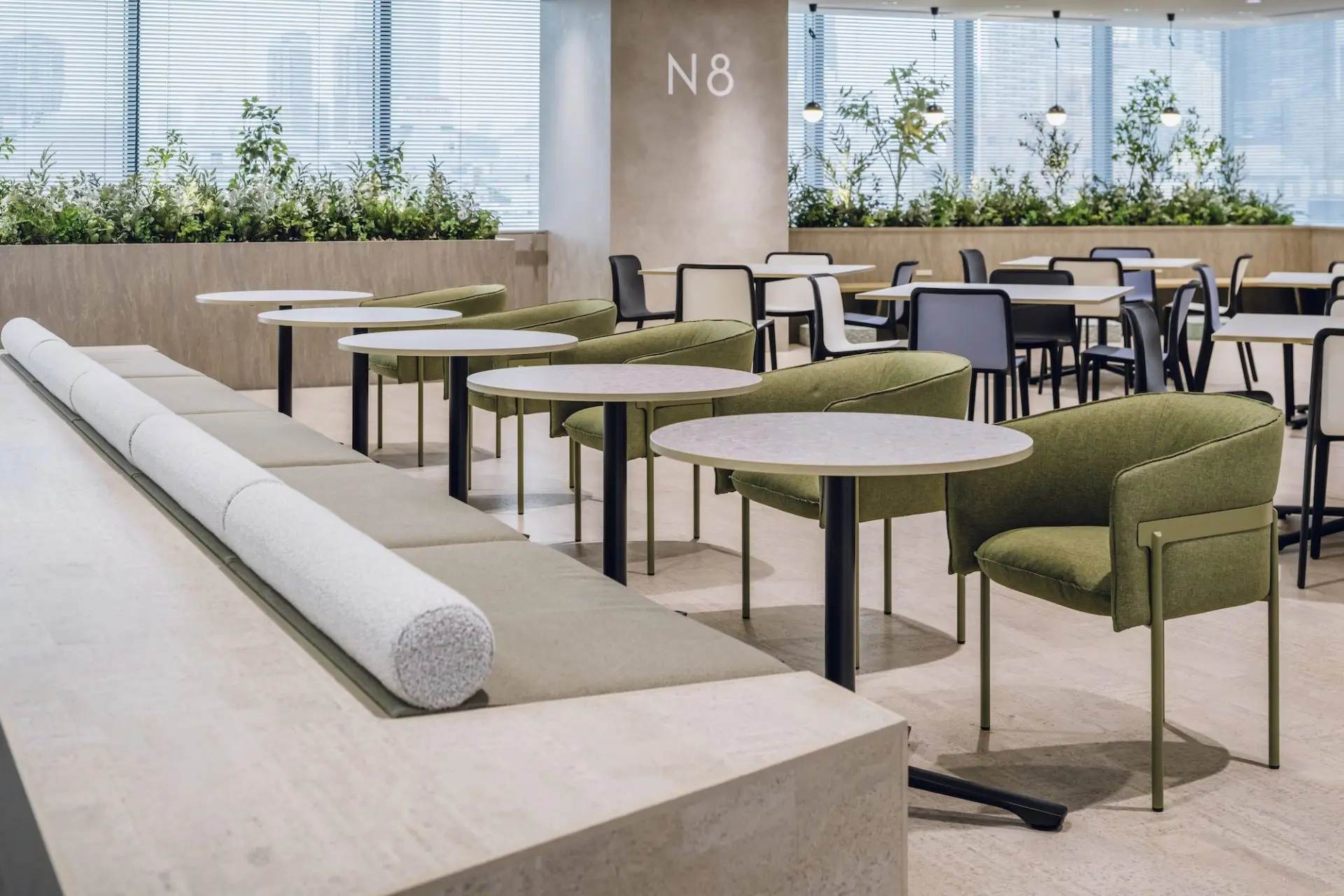 グリーンがあり、綺麗目できっちりとした空間