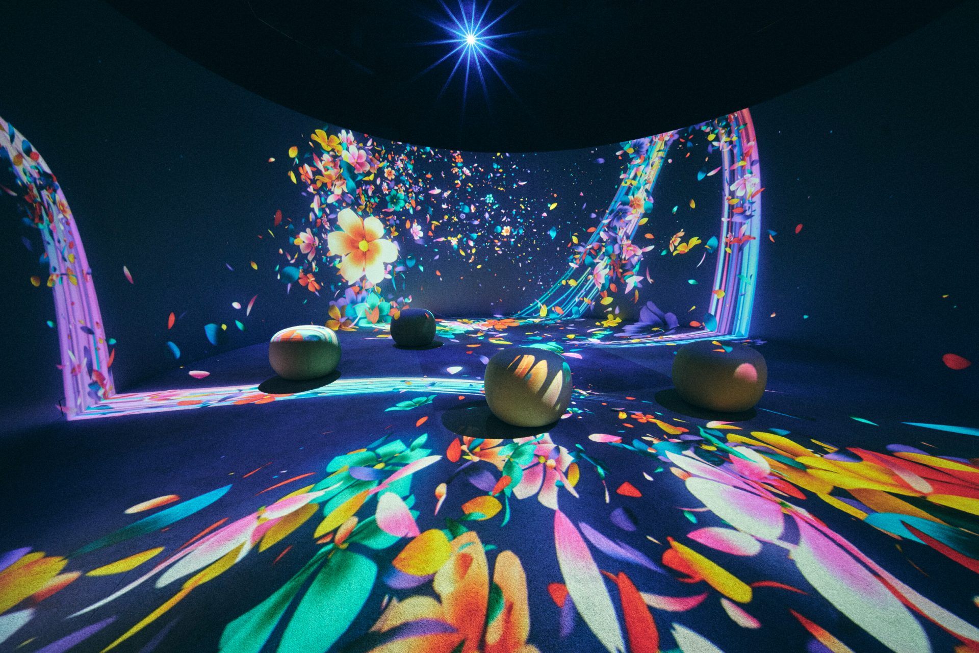 西田:プロジェクトの象徴ともいえる、イマーシブシアターについてです。360度映像に囲まれた空間を実現するため、施工難易度の高い正円の壁を採用。ユニオンテックのクラフトマンシップと、我々の空間設計、そしてエプソン様による映像調整技術。それぞれの知見や技術が結集することで、没入感のある空間を作り上げることができました。